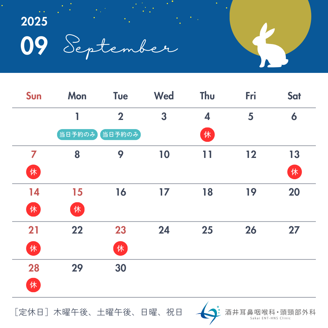 - 【9月の診療スケジュールのお知らせ】 [2025.08.16更新]